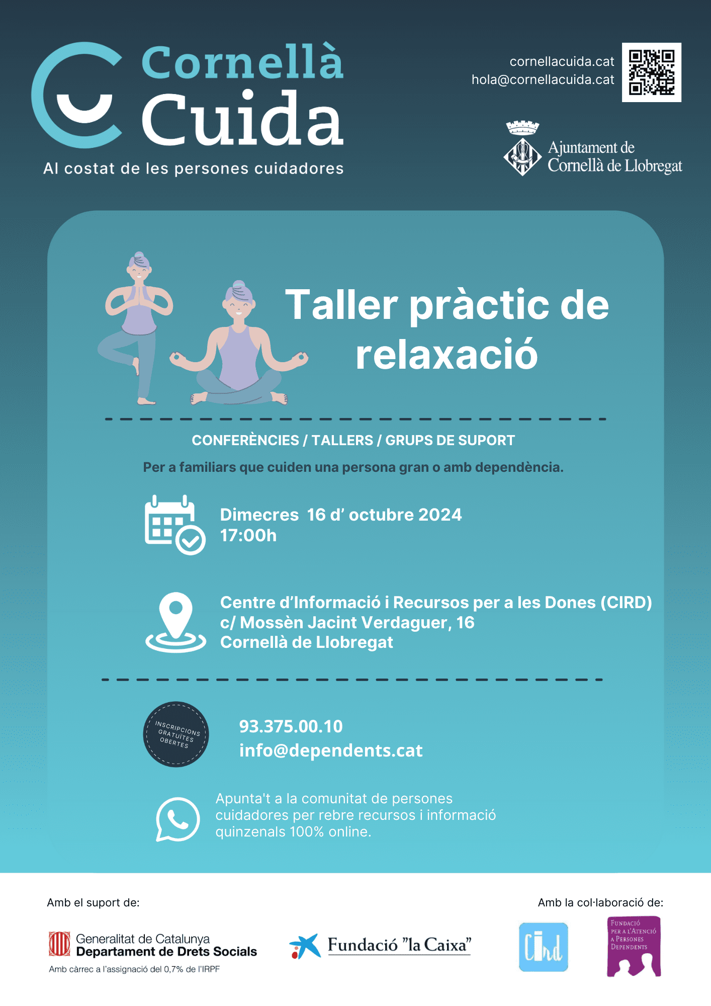 Organitzadora i contacte: Fundació per a l'atenció a persones dependents - 93.375.00.10 - hola@cornellacuida.cat